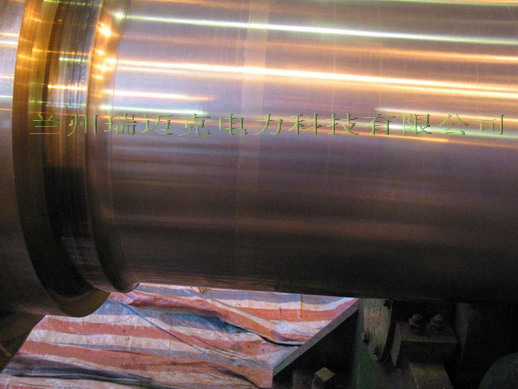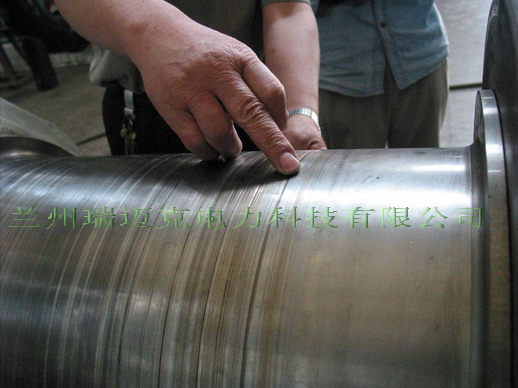 我公司做为国内轴颈修复的先导,先后应用和开发了车削法、热喷涂法、电刷镀法、脉冲冷焊法、激光熔覆法、电火花沉积堆焊法(后被有些企业称为微弧焊法),其中电火花堆焊是采用电容储能、脉冲电火花放电工艺技术,将金属电极材料熔覆在损伤缺陷部位,沉积堆焊至适当高度后,再研修,恢复至原轴颈要求尺寸。焊层质量好;低热输入,基体不变形,不咬边,过渡自然,精度有保障;极小(可忽略)残余应力,对基体热影响甚微(0.07mm);补材与基体属冶金结合,结合强度高,永不脱落,可保证长期使用等优点,自我们2002年8月首次修复了兰州二热#2机发电机转子5瓦轴颈7道沟槽后,受到电厂的青睐,至今全国已有近百根大轴采用此工艺修复。但是,美中仍有不足,速度慢,效率低,微氧化、表面不很美观等固有缺点,决定了它并不是最完美的轴颈修补技术。消除这些不足,把轴颈修复技术提升到一个新的高度,一直是我公司研发部门技术人员努力追求的目标,依托强大的技术实力和丰富的修复经验,我公司最新开发的用于军工航天工业的专利技术已应用于轴颈修复,其工艺具有冶金结合,永不脱落,极小残余引力,效率高,表面美观等优点,堪称完美,可质保长期,是目前轴颈拉伤修复的最好技术。