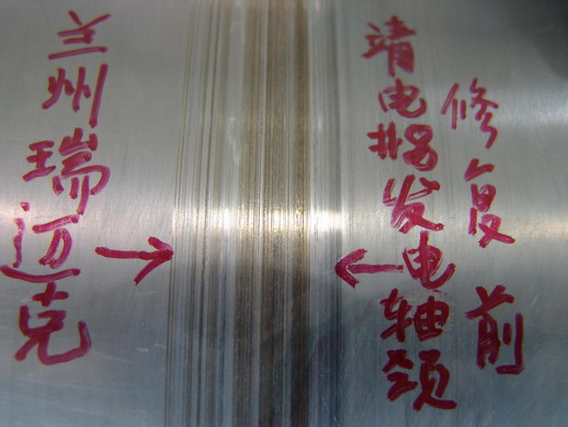 用于汽轮机发电机转子轴颈修复的一些技术,已不能满足密封瓦轴颈磨损修复的要求。如在线精车法,修复后须配非标瓦,多次车削,影响强度,将致转子报废,被称为“自残+自杀”法,已被电厂所掘弃;热喷涂技术由于热输入量太大,不适合在此应用;电刷镀技术由于铜合金镀层与基体结合强度不高、耐磨性能有限;激光融覆技术发热量太大引起母材金相组织及机械性能变化使电厂不愿冒险尝试;贴片焊(微焊)工艺也由于结合力低、工效低、光洁度低被否定;电火花沉积堆焊(微弧焊)技术也由于速度太慢、麻点太多、密封太差达不到预期效果。我公司专利,密封瓦轴颈修复冷焊技术,补材与基体属冶金结合,结合强度极高,不起皮,不脱落,速度快, 精度好,光洁度高,是汽轮发电机密封瓦轴颈磨损修复最好技术,已为十几家电厂现场快速解决此类问题以及其它技术修复效果不理想的困惑。